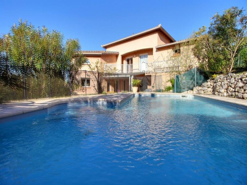 Coeur Pouvourville: Grande villa familiale avec un bel espace de vie, 6 chambres, double terrasse, piscine et garage offrant un cadre de vie confortable et chaleureux dans ce secteur très recherché. Au rez-de-jardin elle offre un grand séjour avec plafond cathédrale et poêle à bois, une cuisine ouverte avec îlot central, 2 chambres une salle d'eau et un wc séparé. A l'étage: une grande rochelle avec espace bureau, 4 chambres et une salle de bains A l'extérieur: un jardin clos avec double terrasse dont une avec accès direct à la piscine sécurisée, un double garage avec espace atelier, une cave et une buanderie. À proximité immédiate des bus, commerces, écoles, lycée, université Paul Sabatier, ainsi que du métro et du Téléo. Pour plus de renseignements merci de contacter IMMO-B (Agence de Ramonville) au 05 61 28 61 28. Immo-B, agence immobilière FNAIM, vous accompagne dans vos projets de vente, d'achat, de location, de gestion locative sur Ramonville St-Agne,Toulouse Pouvourville, Pechbusque, Auzeville-Tolosane, Vieille-Toulouse, Vigoulet-Auzil, Mervilla, Castanet-Tolosan, Péchabou, Rebigue, Aureville et les Coteaux.